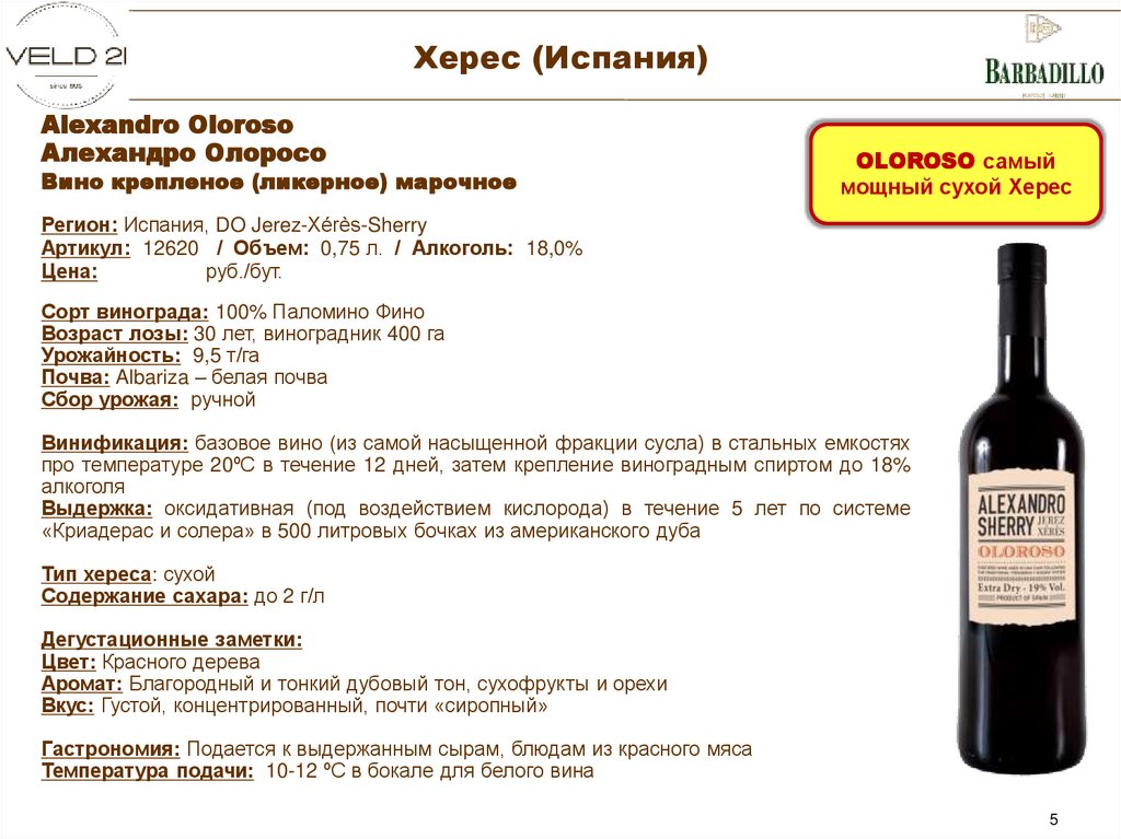 Тип хереса: сухой