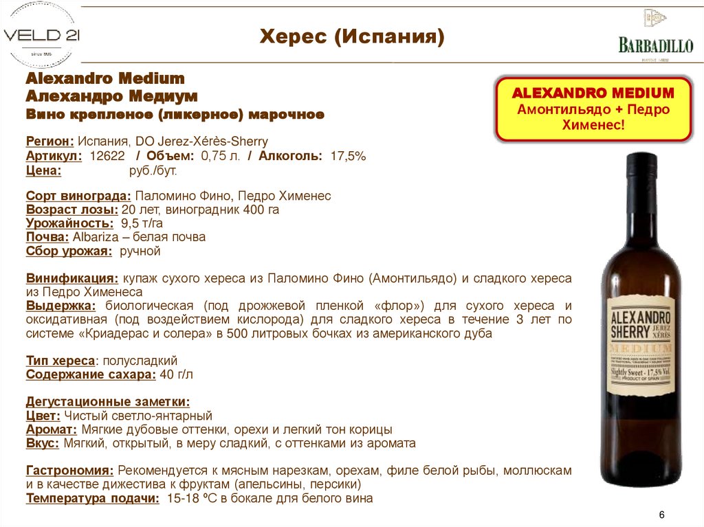на премиальные купажи хереса Alexandro.
