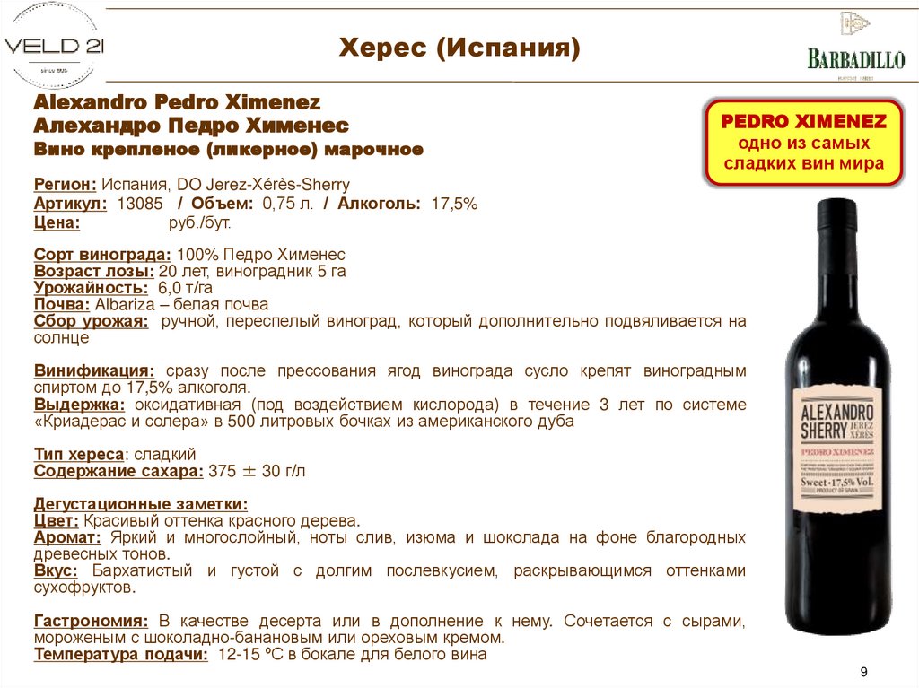 Сорт винограда: Паломино Фино, Педро Хименес