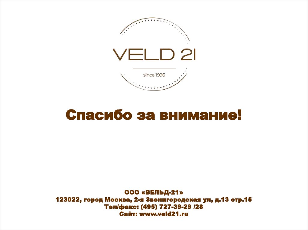 Спасибо за внимание!ООО «ВЕЛЬД-21»