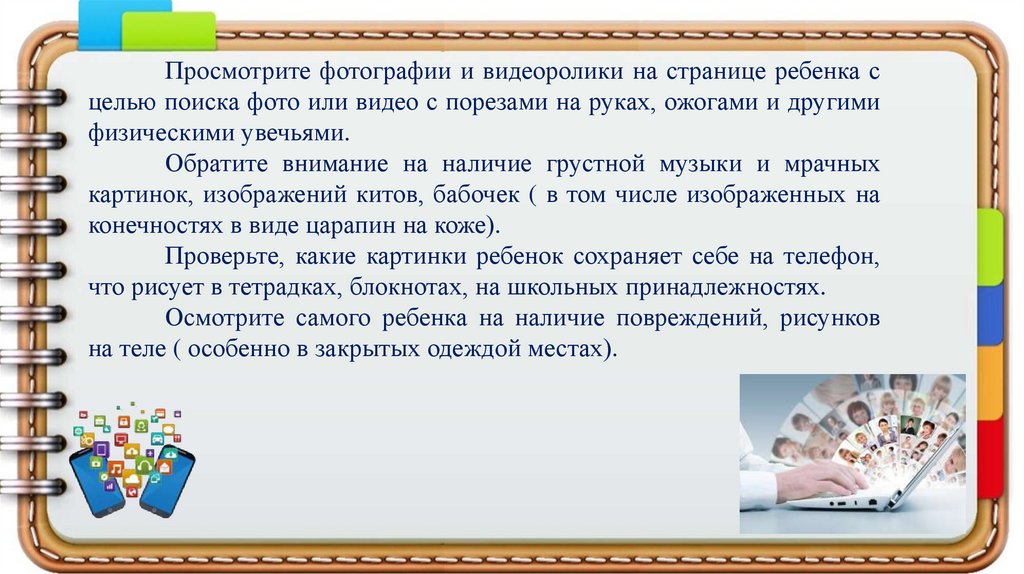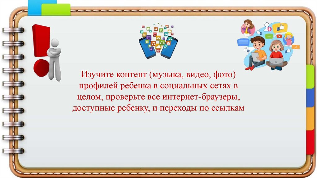 Изучите контент (музыка, видео, фото)профилей ребенка в социальных сетях в