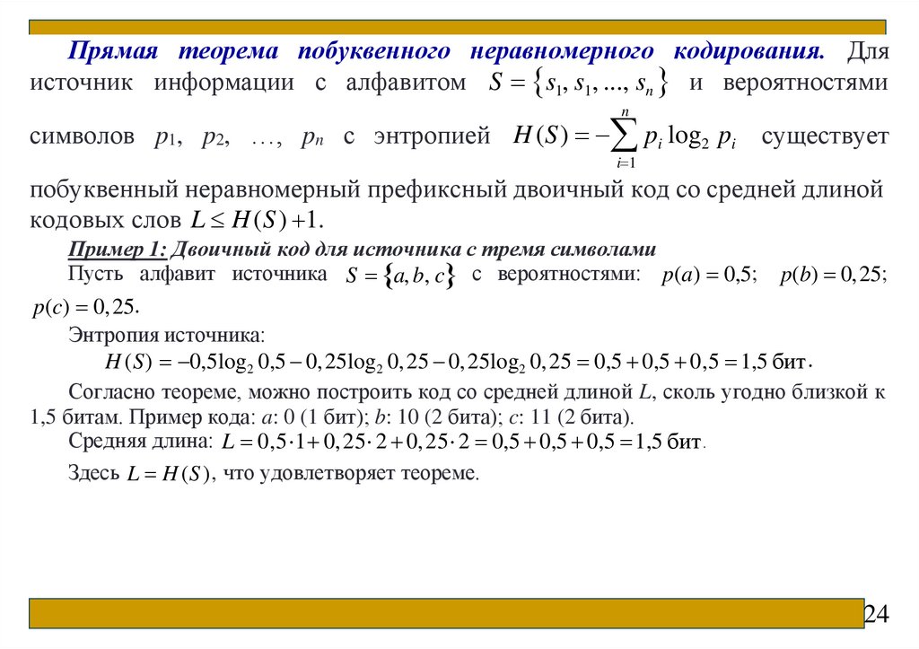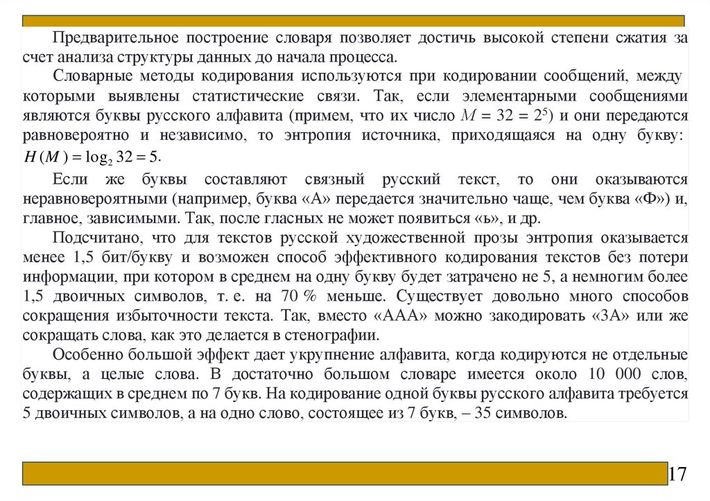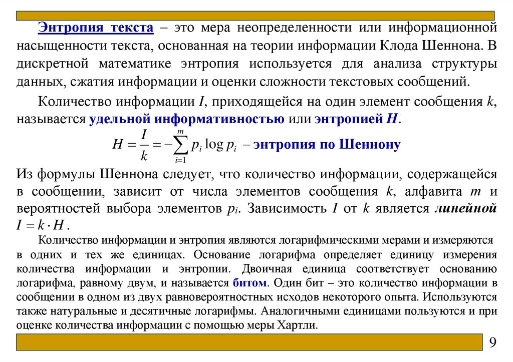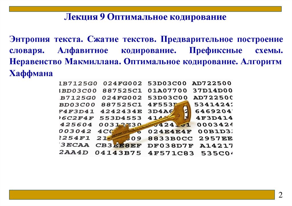 Лекция 9 Оптимальное кодированиеЭнтропия текста. Сжатие текстов. Предварительное построение