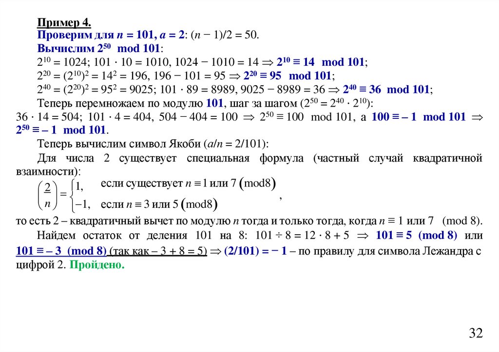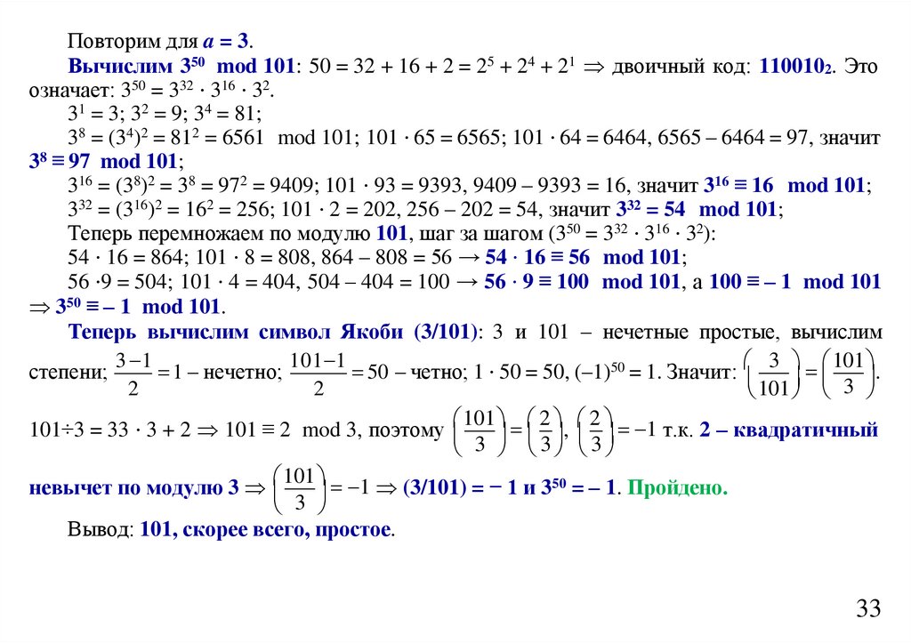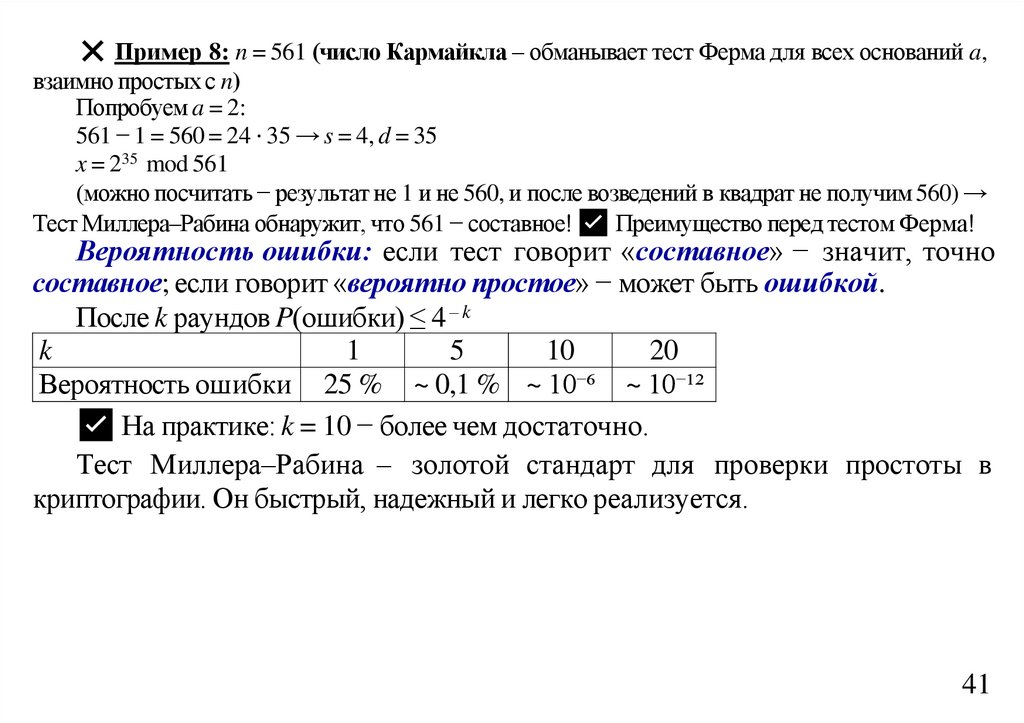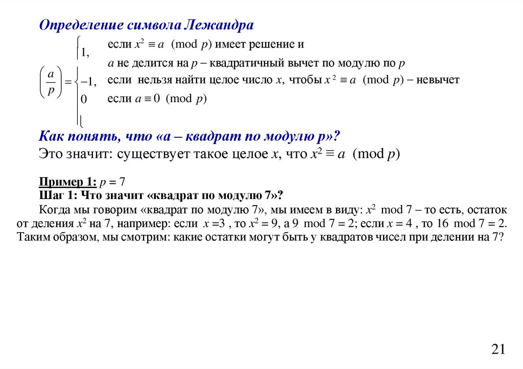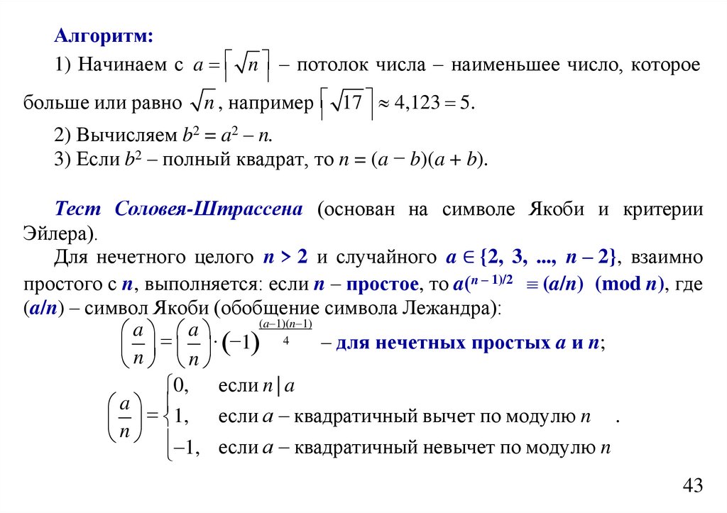 Если a n 1, то a – точно не квадрат по модулю n.