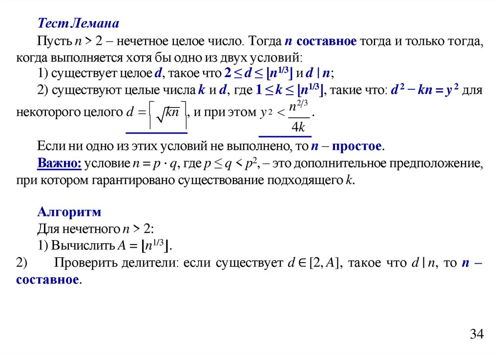 таких критериев служит метод выделения множителей Ферма: целое нечетное число n не