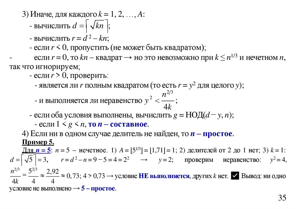 Вычислим 35 5,916 . Значит, проверяем делители от 2 до 5: d = 2, 3, 4, 5.