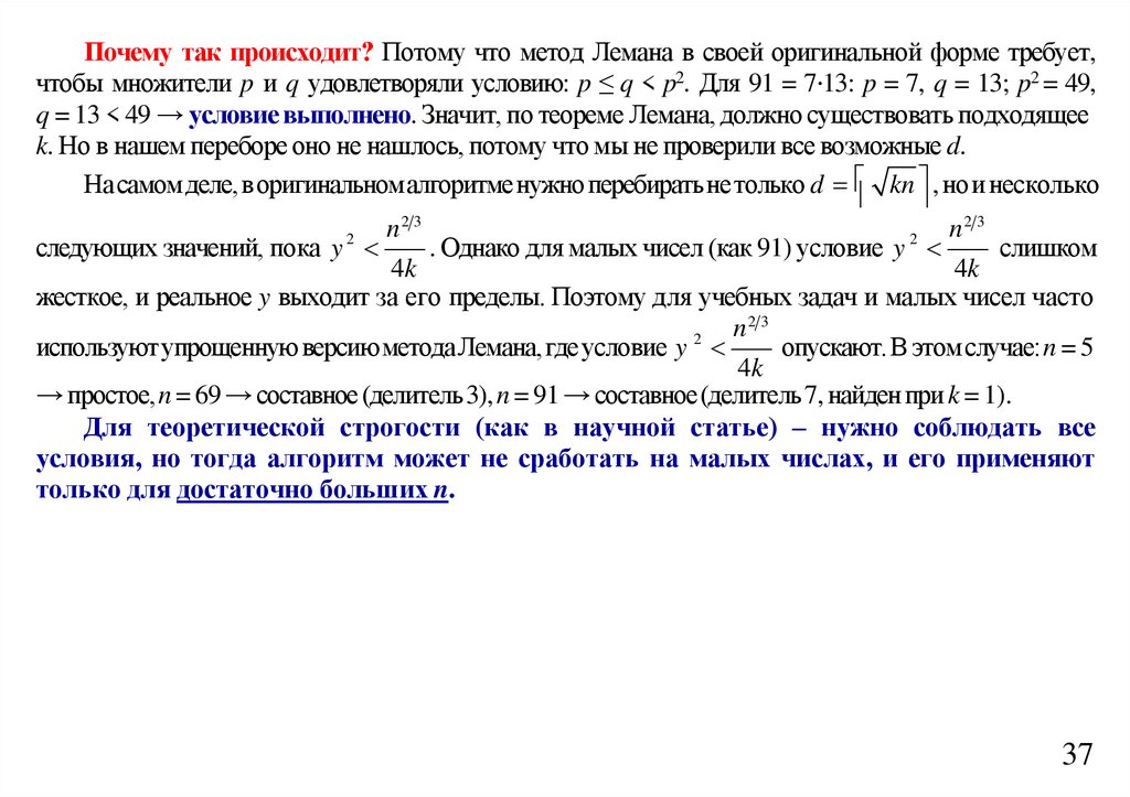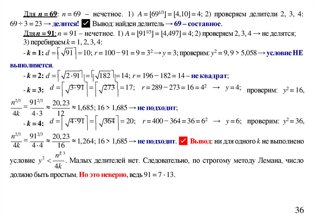 значения p = (n + 1)/2. Если полный квадрат не достигнут, значит n – простое число.