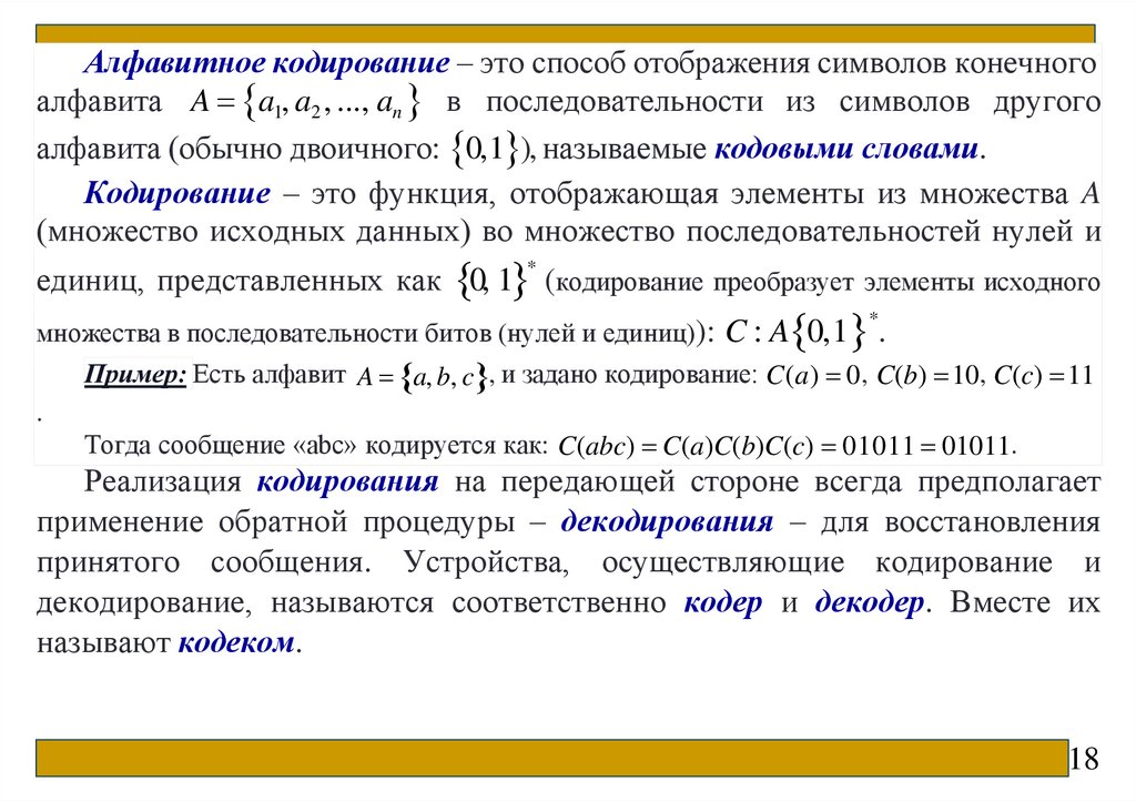 Теория кодирования – это раздел теории информации, изучающий способыотождествления сообщений с отражающими их сигналами. Задачей теории