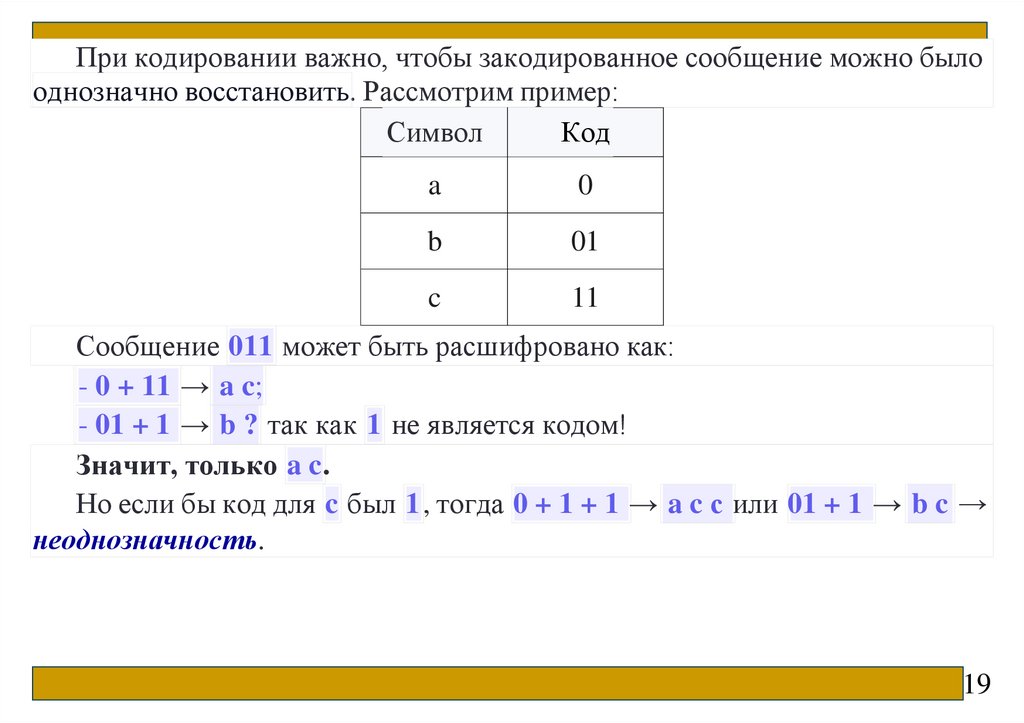 Обратная операция – декодирование – заключается в восстановлении