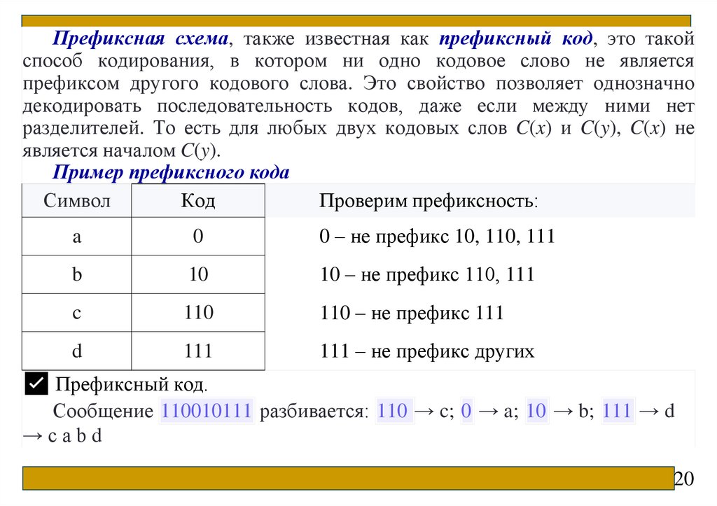 словаря. Алфавитное кодирование. Префиксные схемы.