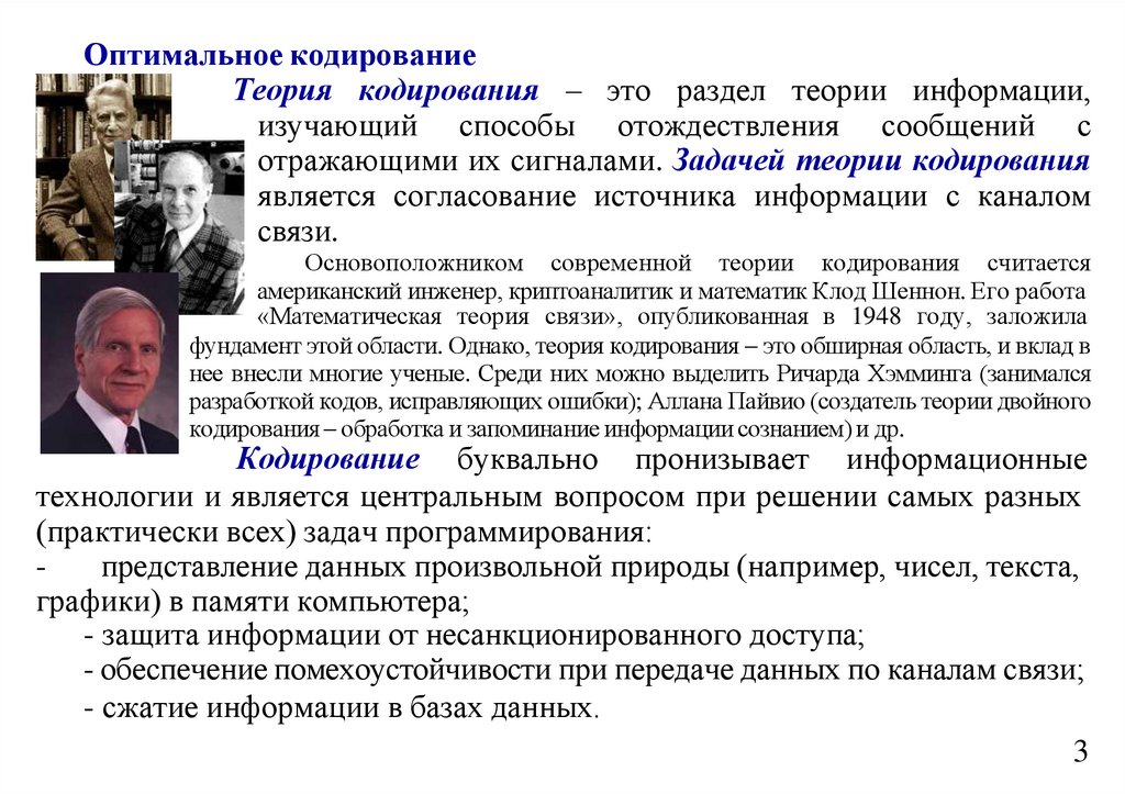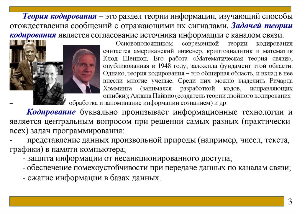 Основоположником современной теории кодирования