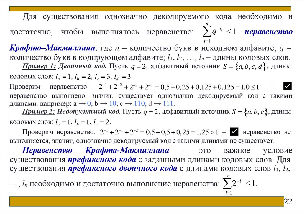 Неравенство Макмиллана. Оптимальное кодирование. Алгоритм
