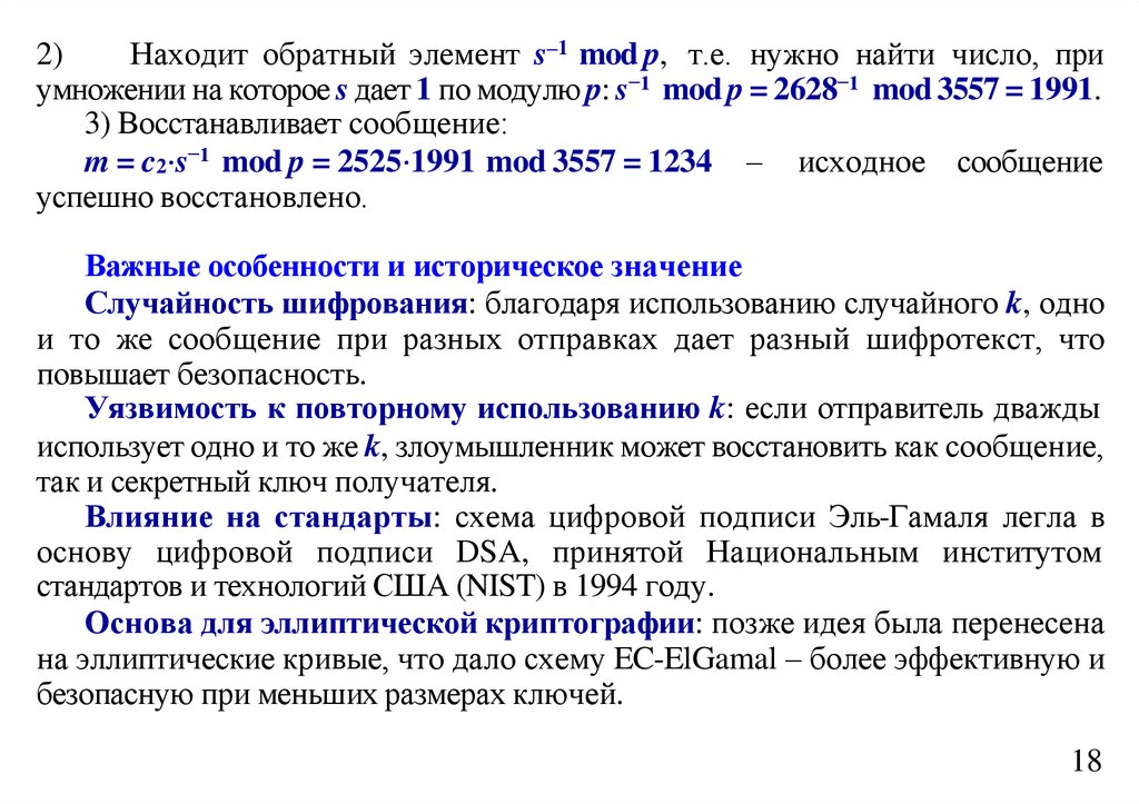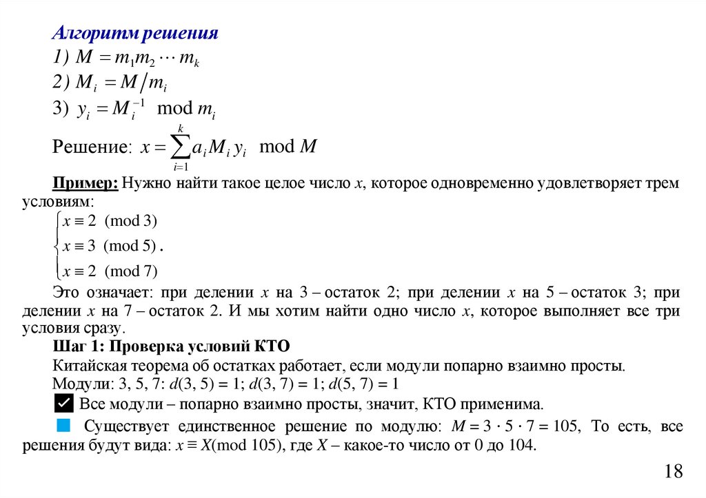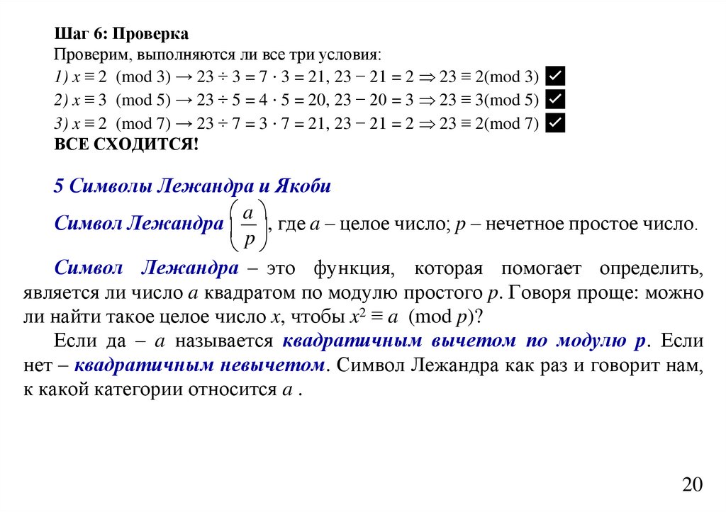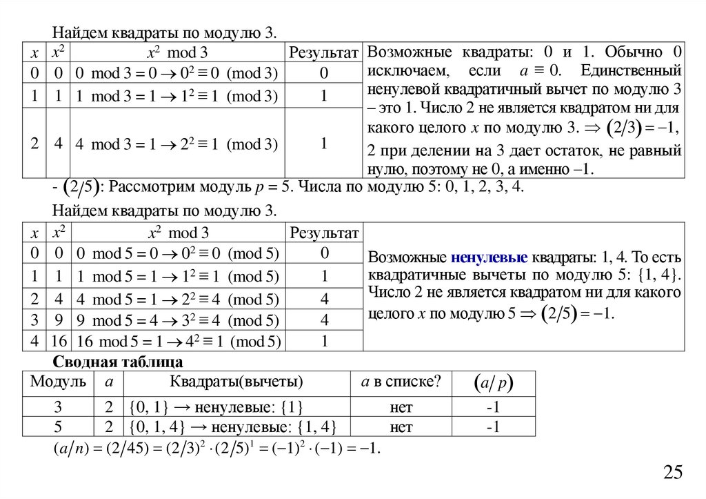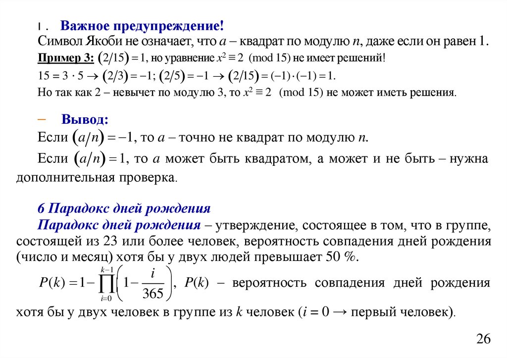 Но так как 2 – невычет по модулю 3, то x2 ≡ 2 (mod 15) не может иметь решения.