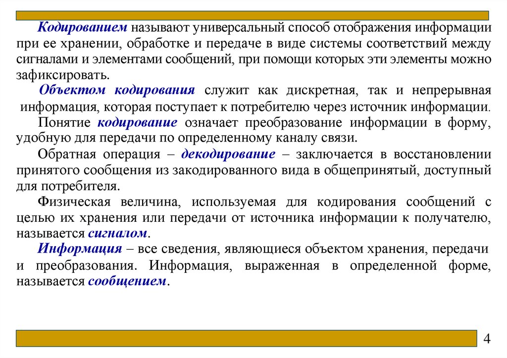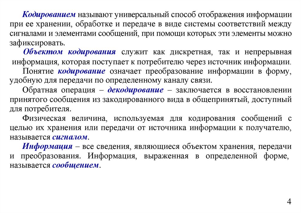 Объектом кодирования служит как дискретная, так и непрерывная