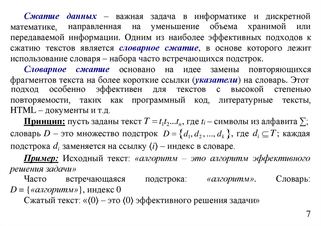 - сжатие информации в базах данных.