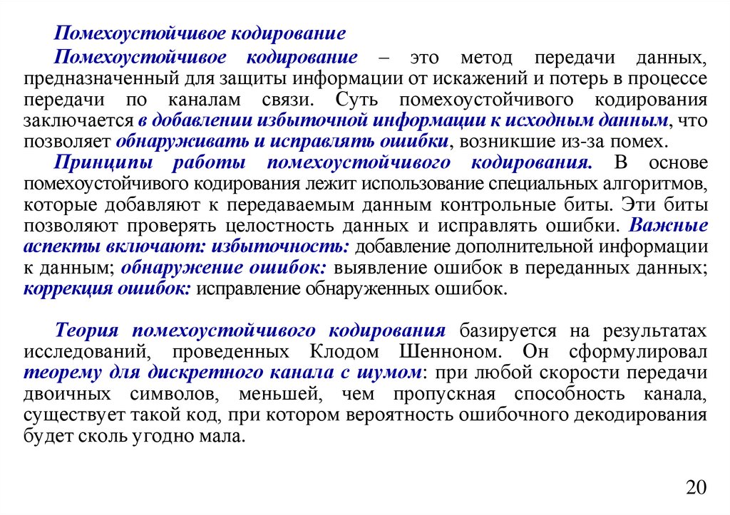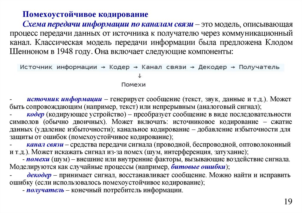 - обеспечение помехоустойчивости при передаче данных по каналам связи;