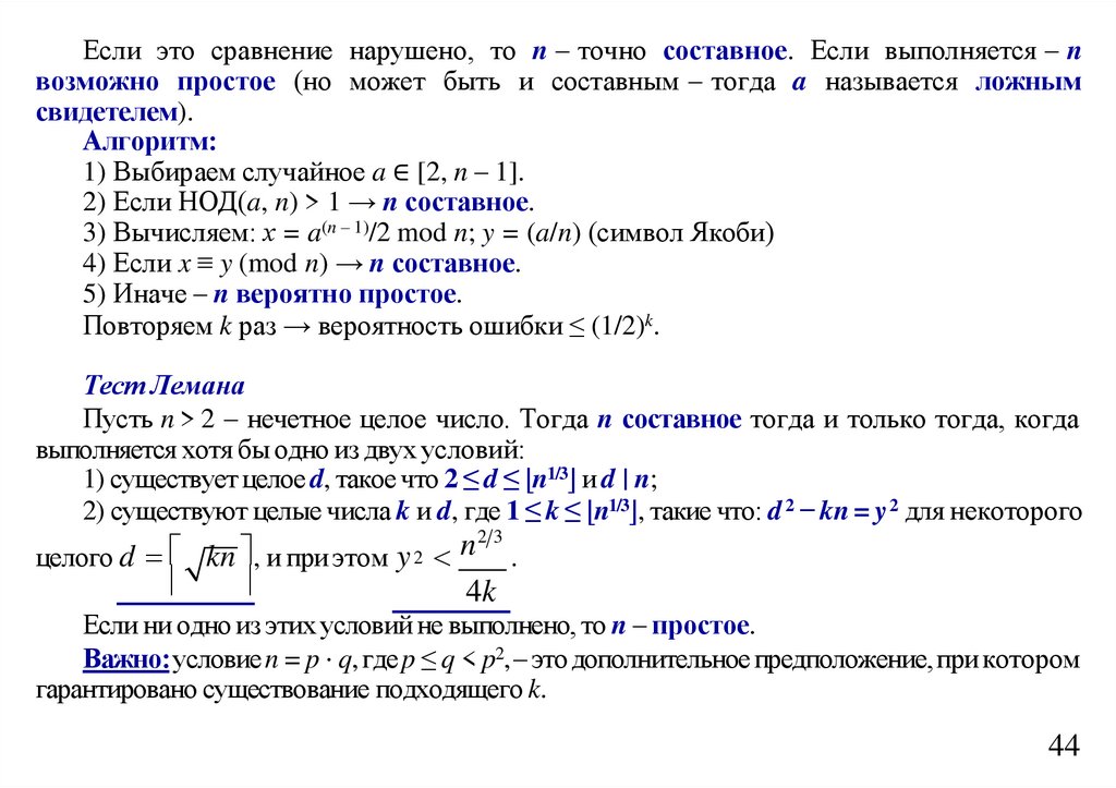 Если это сравнение нарушено, то n – точно составное. Если