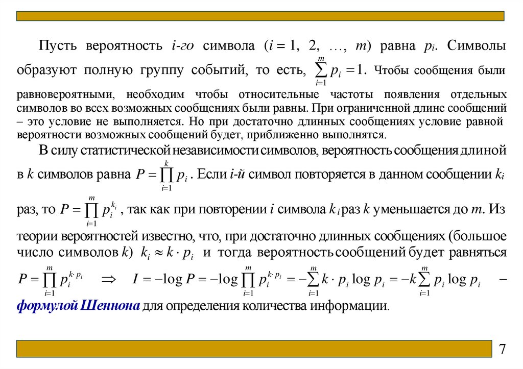 3) символы, составляющие сообщения равновероятны и независимы.