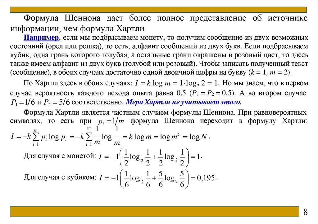Количество информации по Хартли и ШеннонуПонятие количество информации отождествляется с
