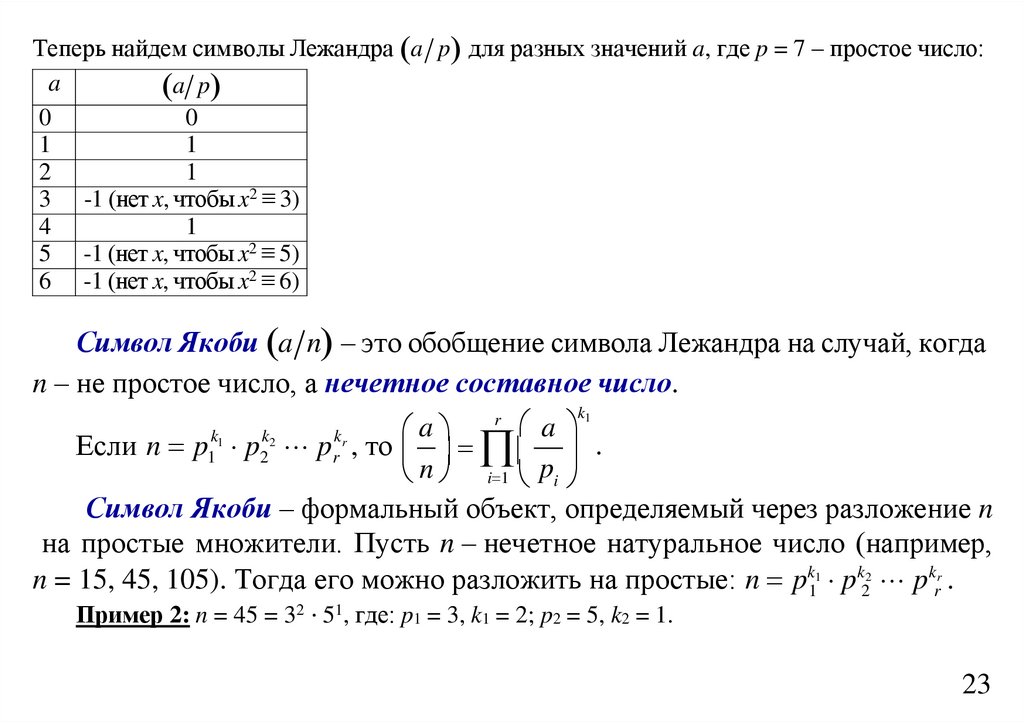 (обобщение символа Лежандра):