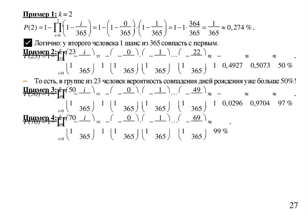 (число и месяц) хотя бы у двух людей превышает 50 %.