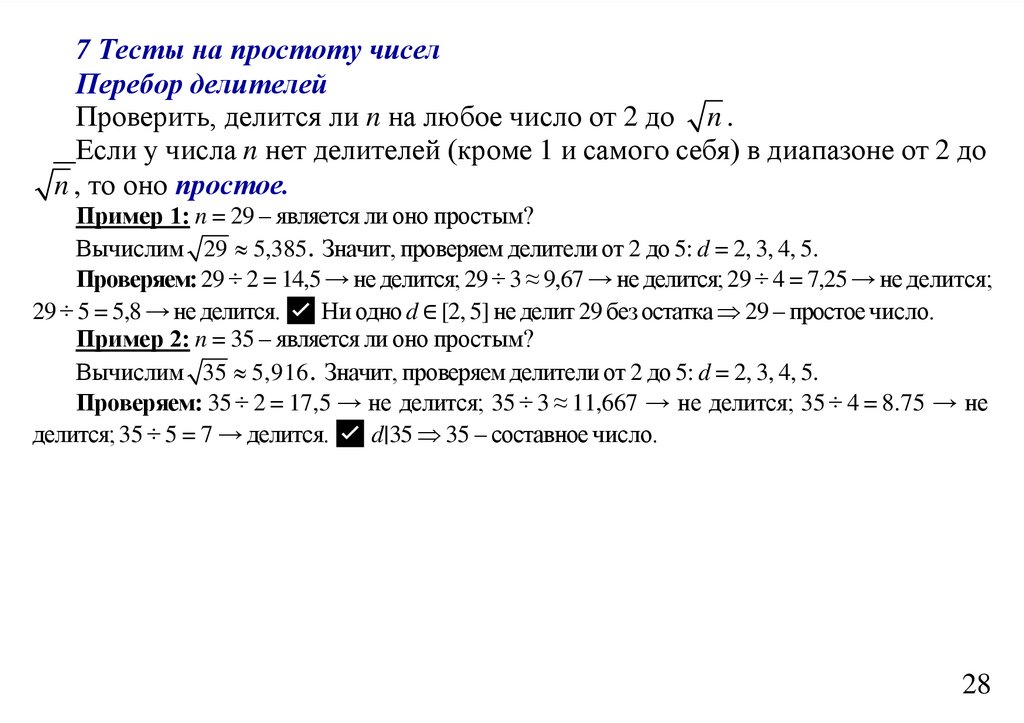 7 Тесты на простоту чиселПеребор делителей