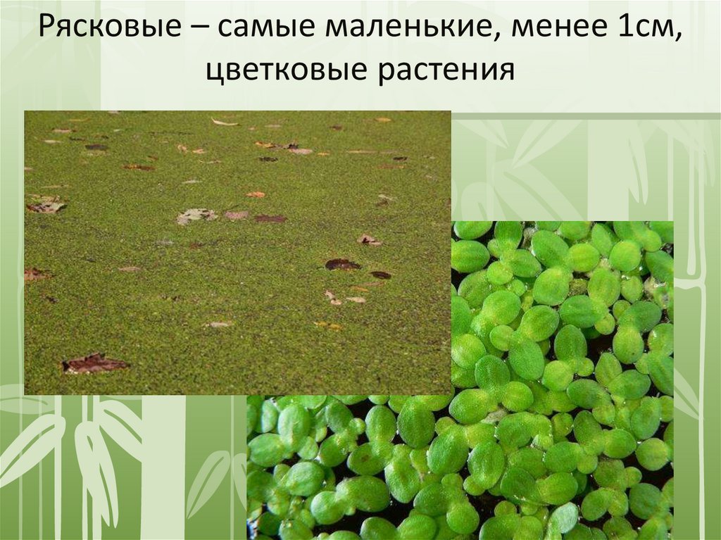 Рясковые – самые маленькие, менее 1см,цветковые растения