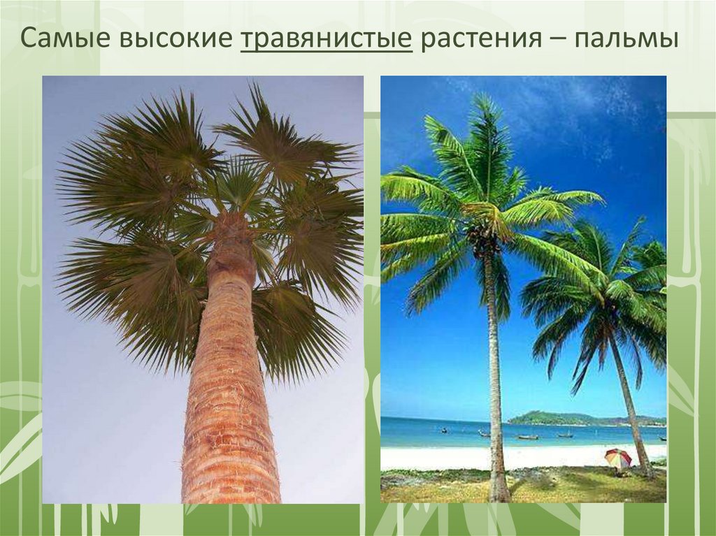 Самые высокие травянистые растения – пальмы10.