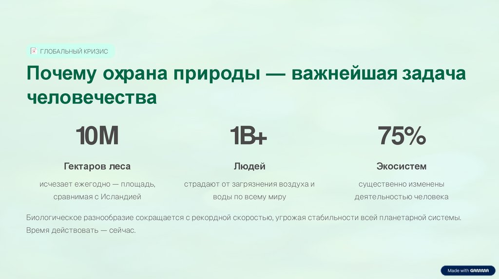 ГЛОБАЛЬНЫЙ КРИЗИСПочему охрана природы — важнейшая задача