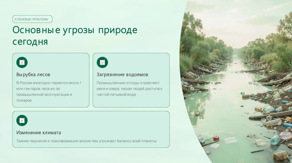 КЛЮЧЕВЫЕ ПРОБЛЕМЫОснов ны е угрозы природе