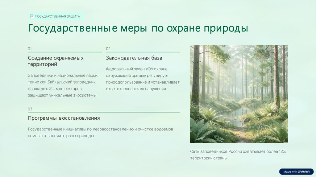 ГОСУДАРСТВЕННАЯ ЗАЩИТАГосударственны е меры по охране природы