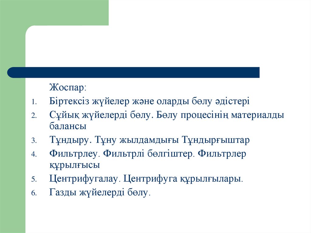 1. Дәріс 10 БІРТЕКСІЗ ЖҮЙЕЛЕРДІ БӨЛУ