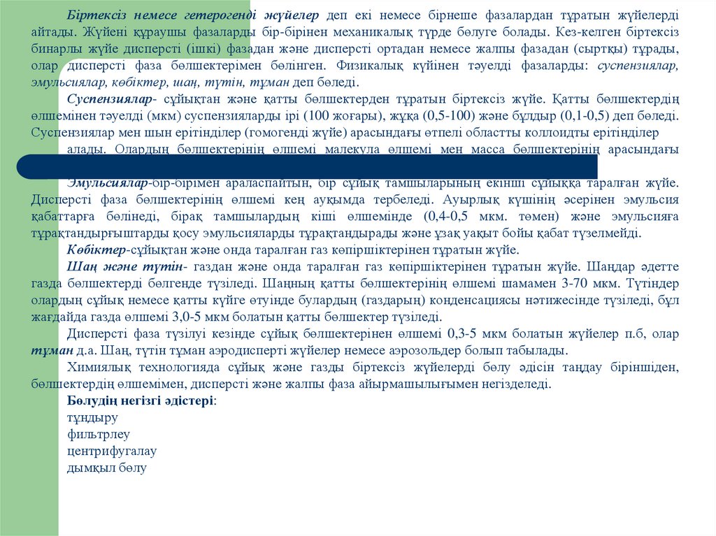 Сұйық жүйелерді бөлу. Бөлу процесінің материалды