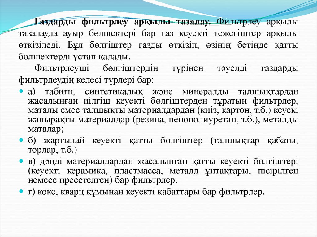 Газдарды дымқыл тазартуГаздарды шаңнан жұқа тазарту үшін дымқыл