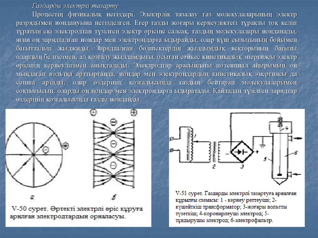 Газдарды электрлі тазартуПроцестің физикалық негіздері. Электрлік тазалау газ молекулаларының электр