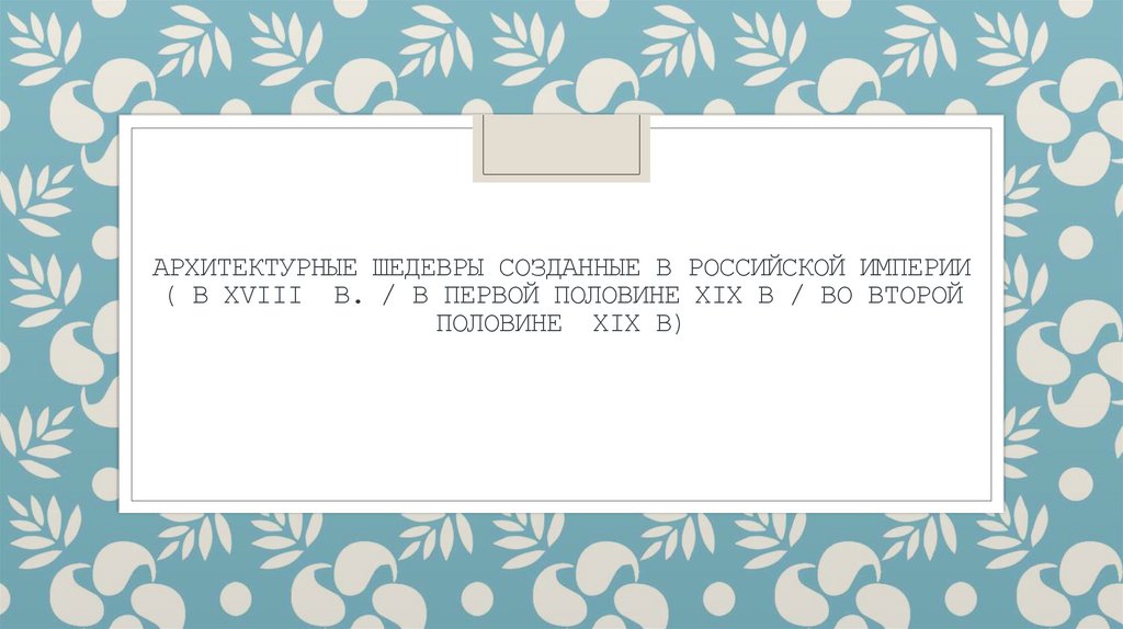 АРХИТЕКТУРНЫЕ ШЕДЕВРЫ СОЗДАННЫЕ В РОССИЙСКОЙ ИМПЕРИИ( В XVIII В. / В ПЕРВОЙ ПОЛОВИНЕ XIX В / ВО ВТОРОЙ
