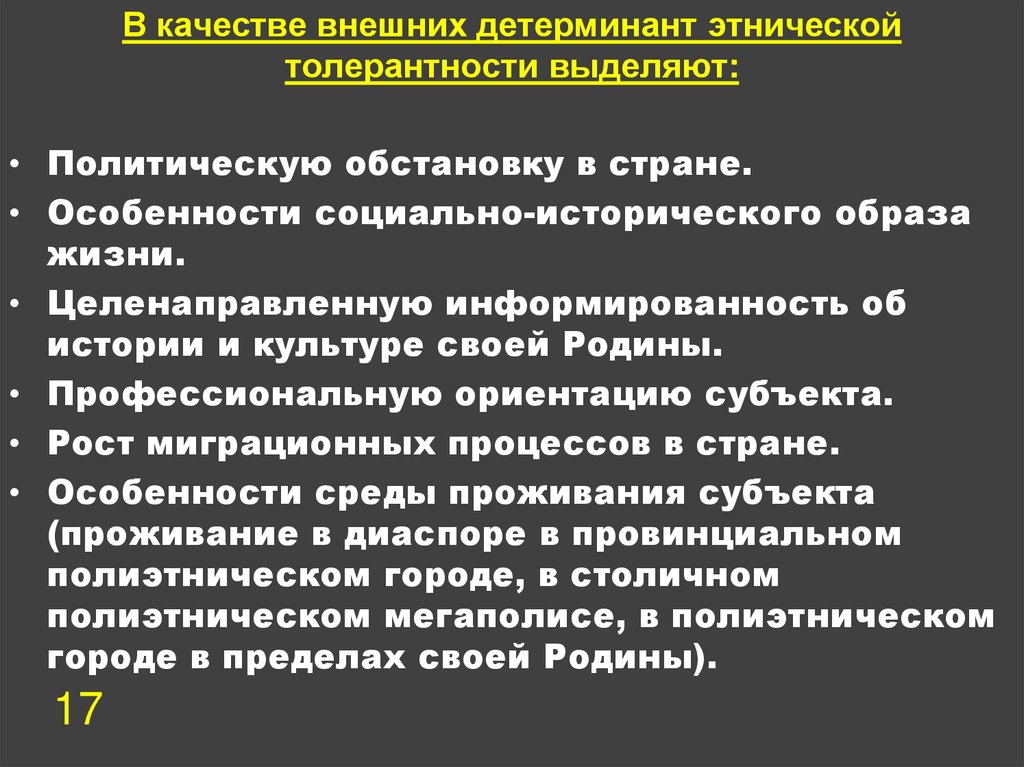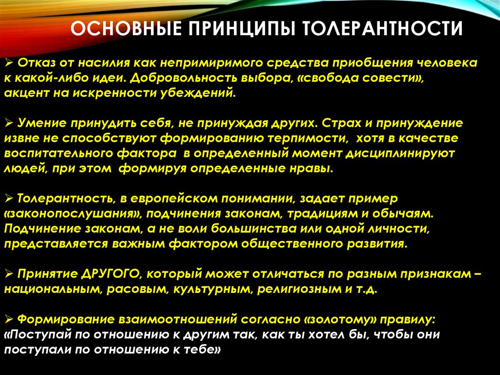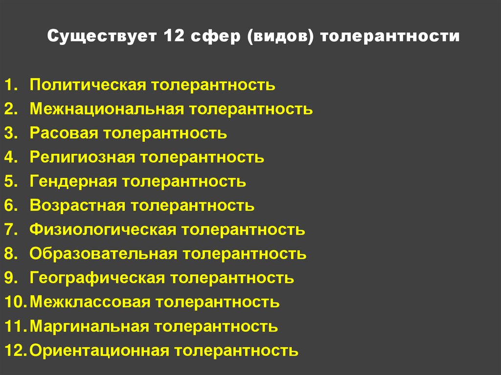 толерантности, организацию