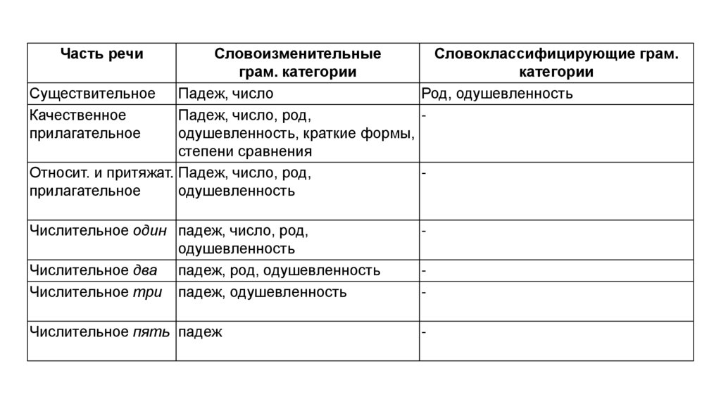 единица, какова парадигма словоизменения, какие есть типичные морфемы)),