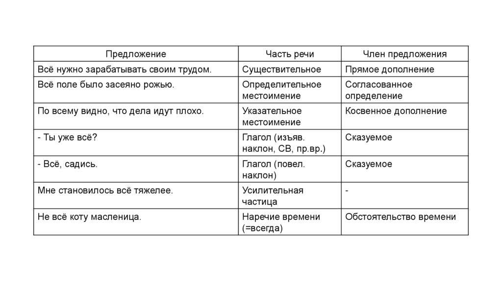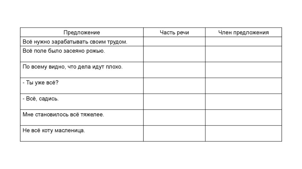 ПредложениеВсё нужно зарабатывать своим трудом.