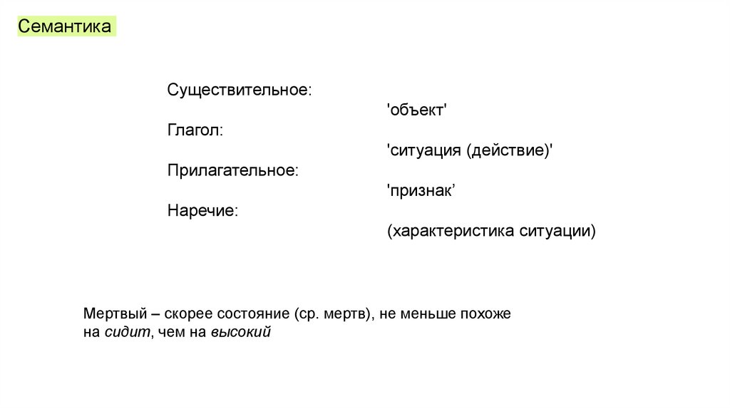 Часть речи и семантика лексемы очевидным образом коррелируют«существительное обозначает предмет»