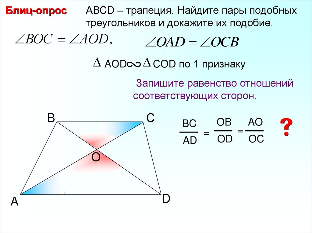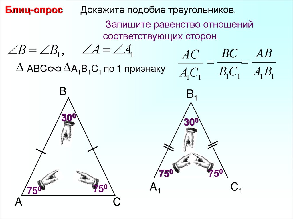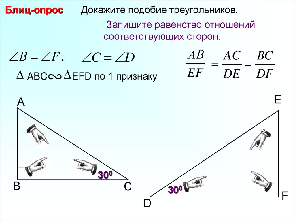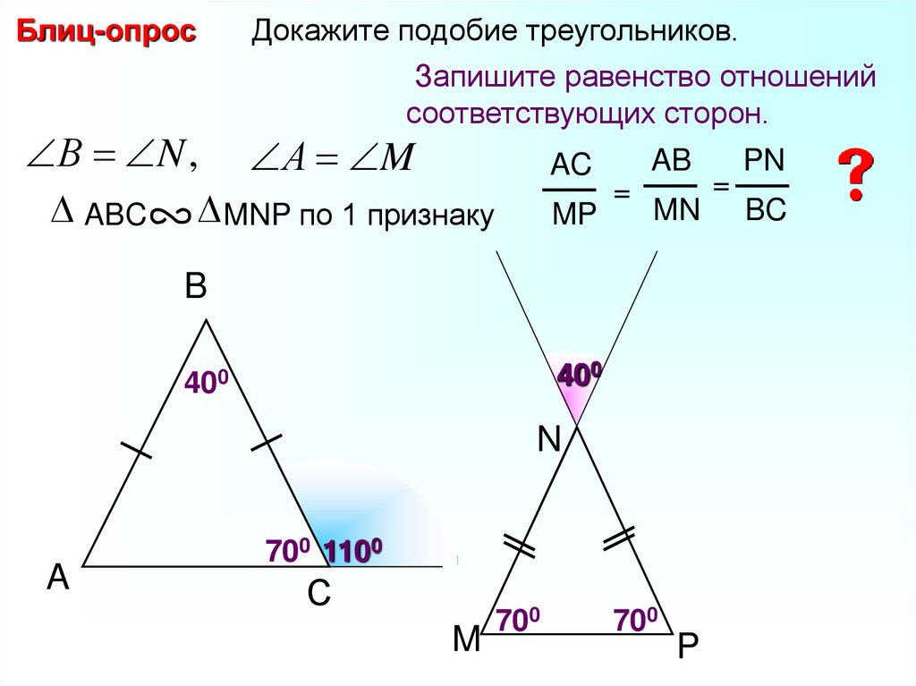 Блиц-опросДокажите подобие треугольников.
