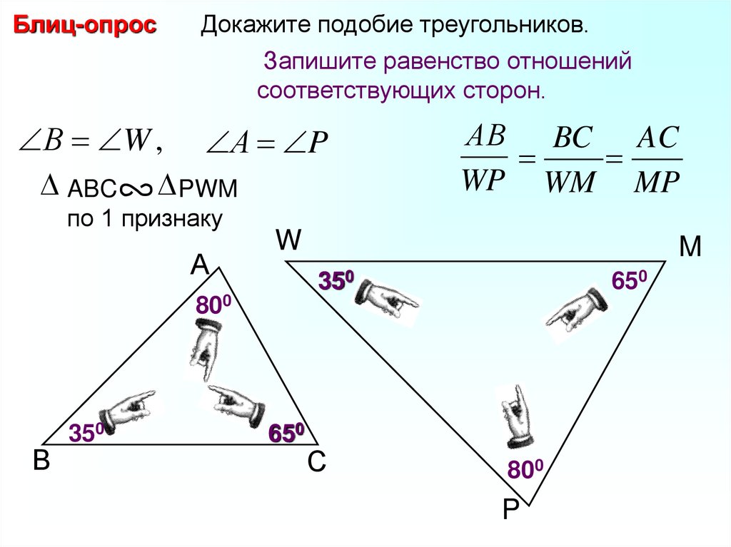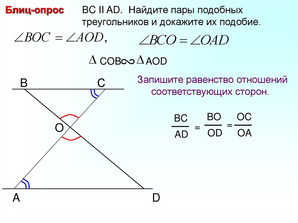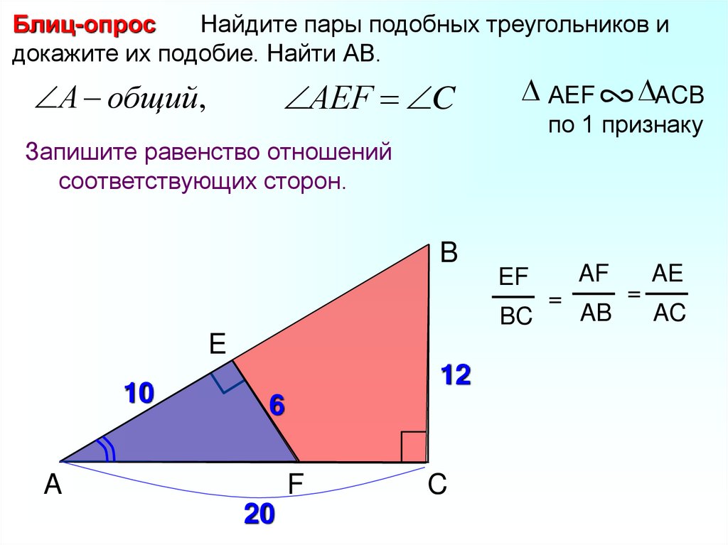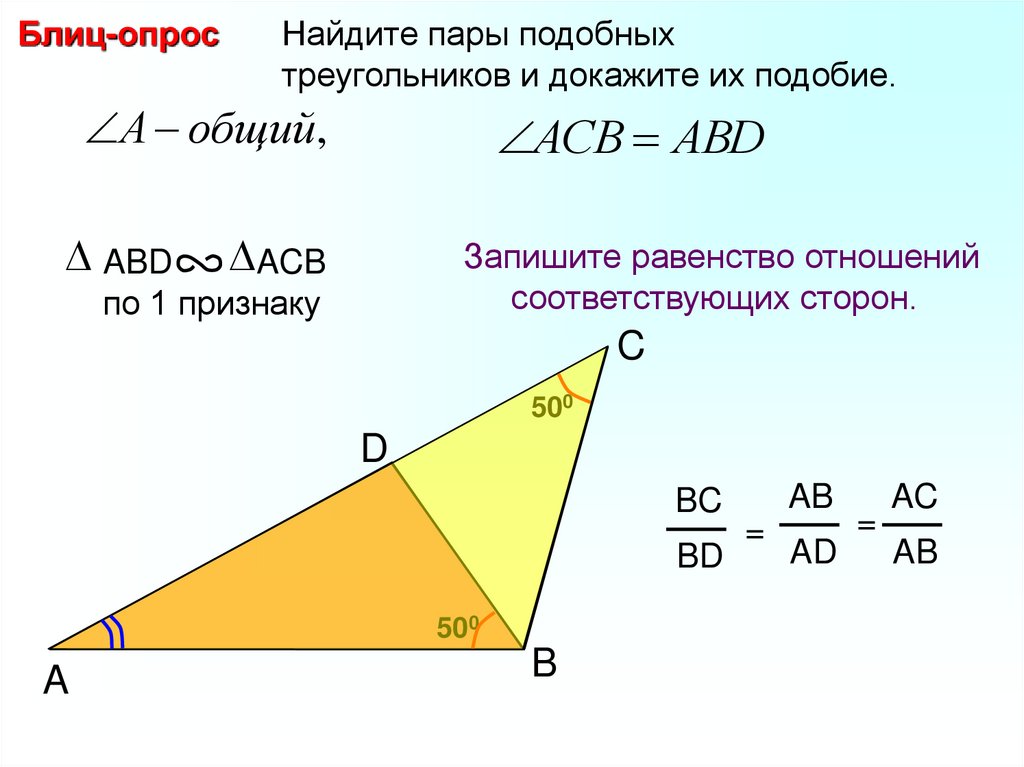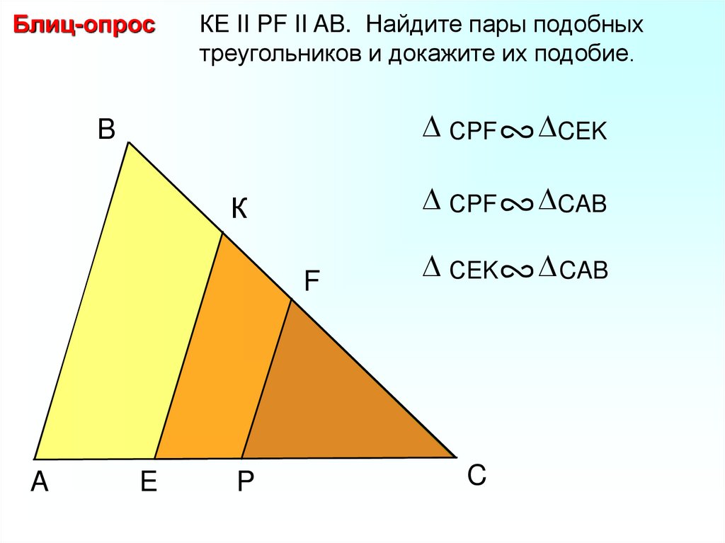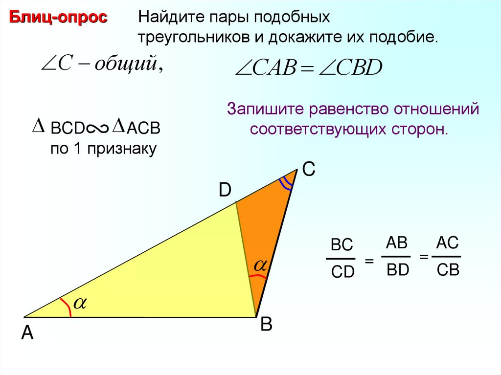 Блиц-опросНайдите пары подобных треугольников и