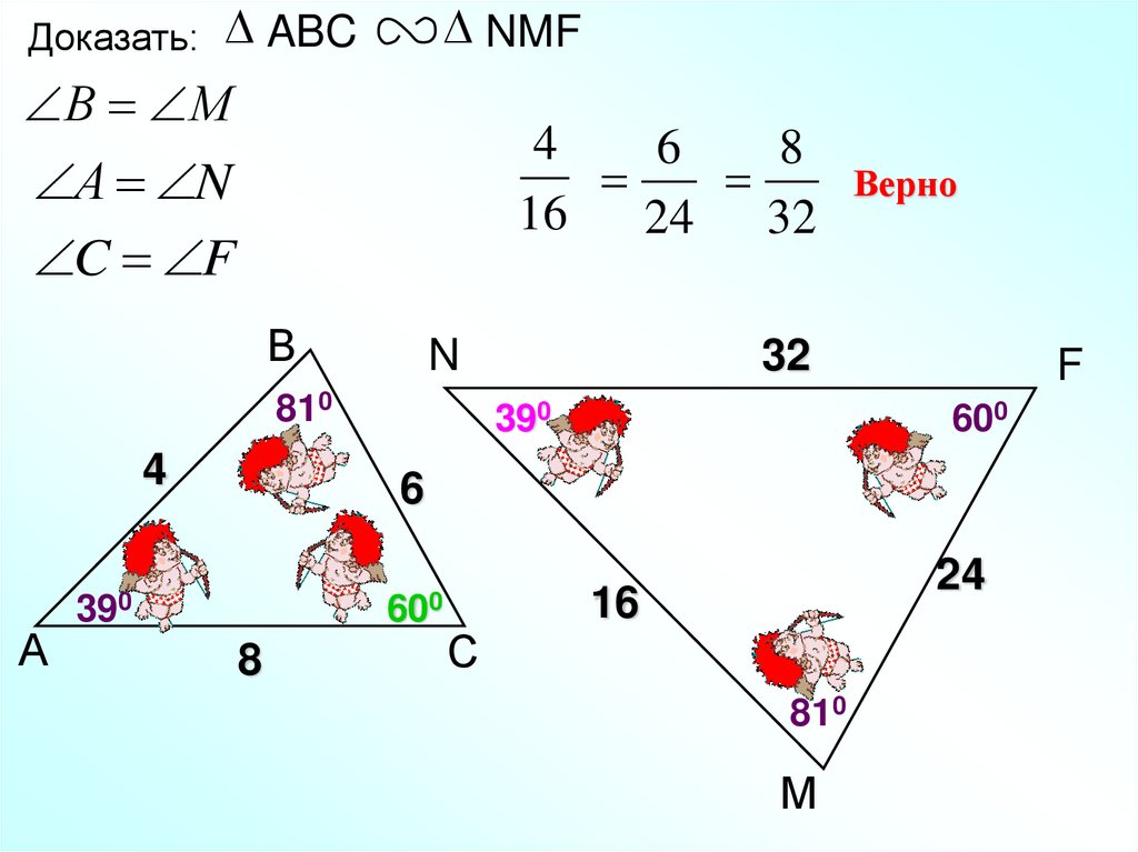 подобных треугольников и докажите их подобие.