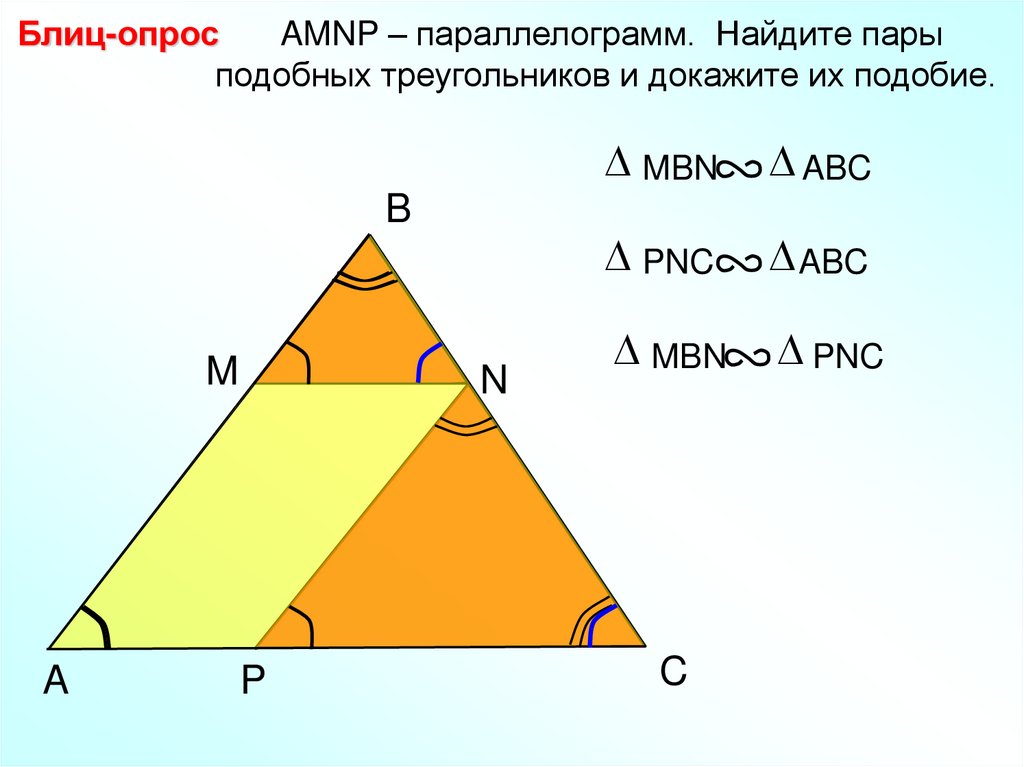 Блиц-опросAMNP – параллелограмм. Найдите пары