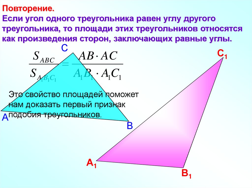 Повторение.Если угол одного треугольника равен углу другого