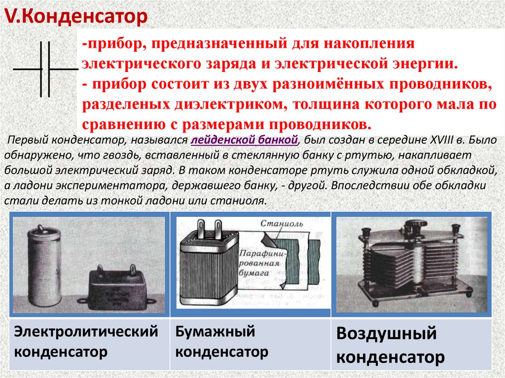 Первый конденсатор, назывался лейденской банкой, был создан в середине XVIII в. Было