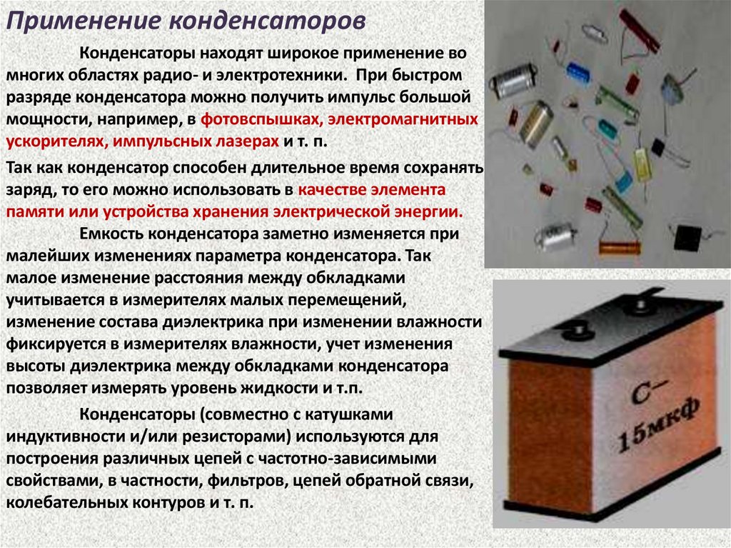 Применение конденсаторовКонденсаторы находят широкое применение во