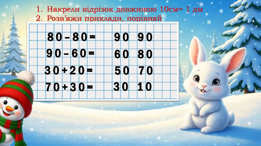 1. Накрели відрізок довжиною 10см= 1 дм