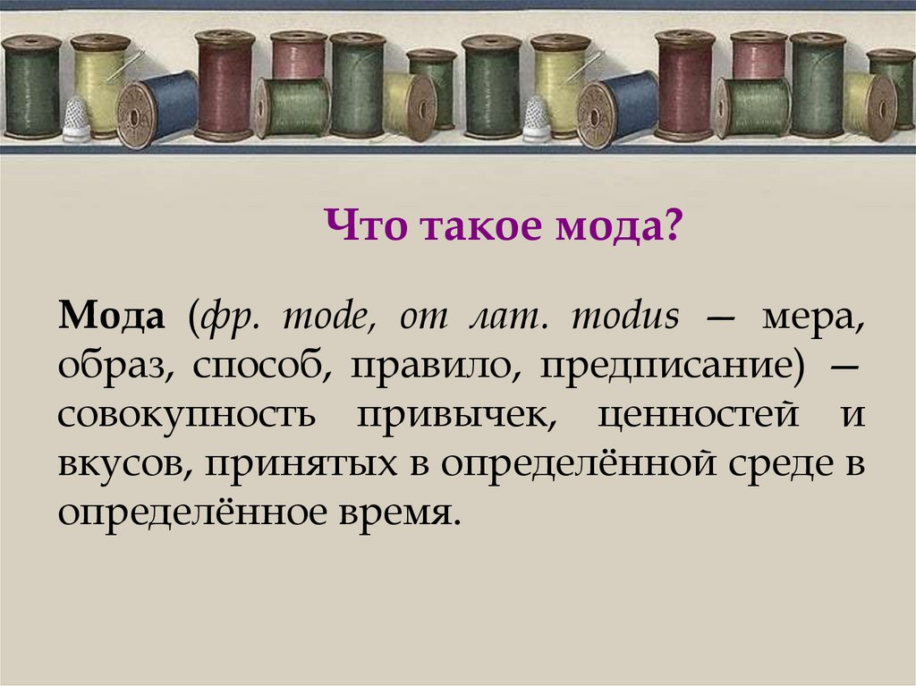 Что такое мода?Мода (фр. mode, от лат. modus — мера,