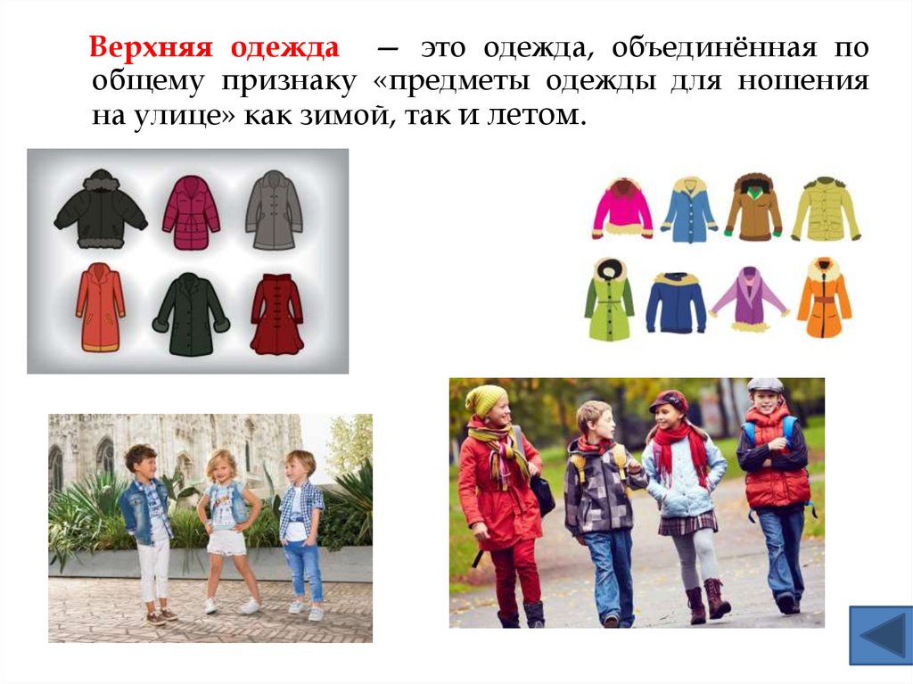 Верхняя одежда — это одежда, объединённая пообщему признаку «предметы одежды для ношения