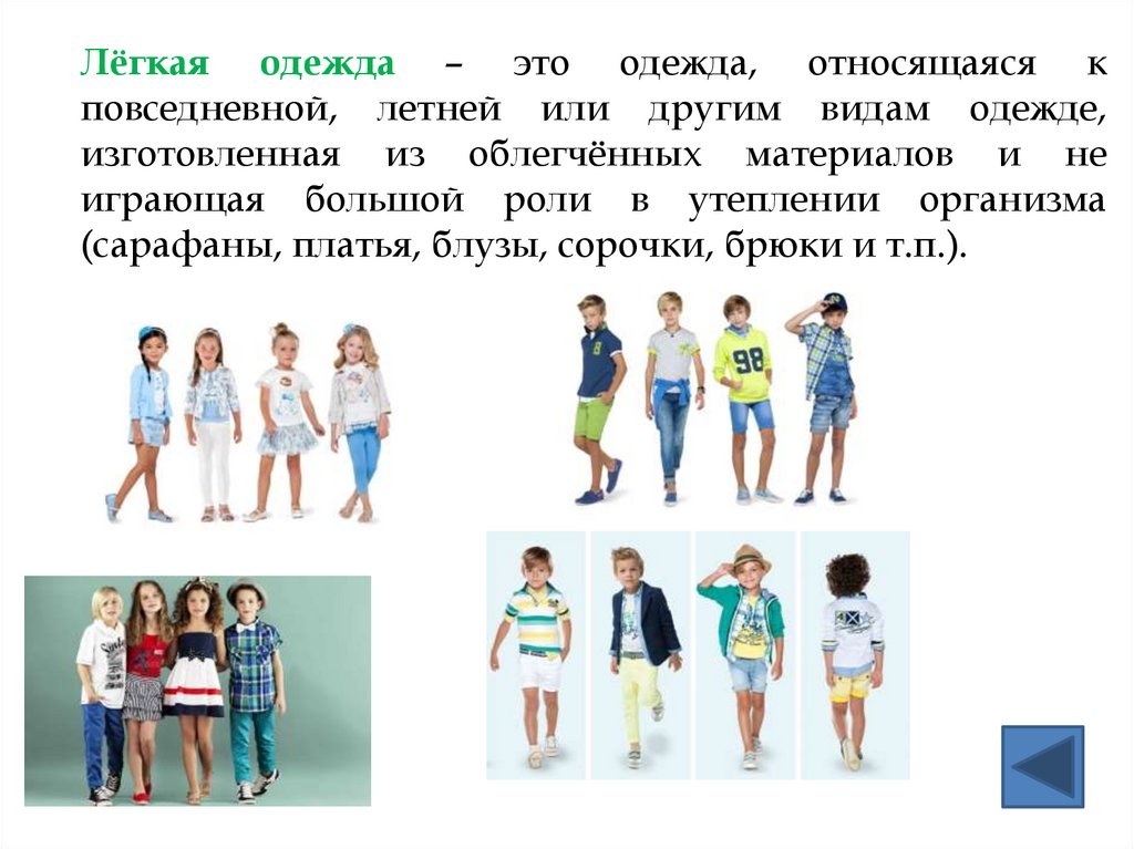 Лёгкая одежда – это одежда, относящаяся кповседневной, летней или другим видам одежде,